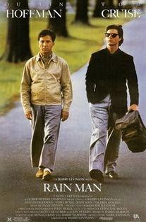 《雨人》是一部由巴瑞·莱文森执导,达斯汀·霍夫曼和汤姆·克鲁斯主演的电影。影片讲述了一个患有自闭症的哥哥雷蒙(达斯汀·霍夫曼饰)和一个渴望财富的弟弟查理(汤姆·克鲁斯饰)之间的故事。在一次偶然的机会下,查理得知自己有一个患有自闭症的哥哥,于是他决定带着哥哥去寻找父亲留下的遗产。